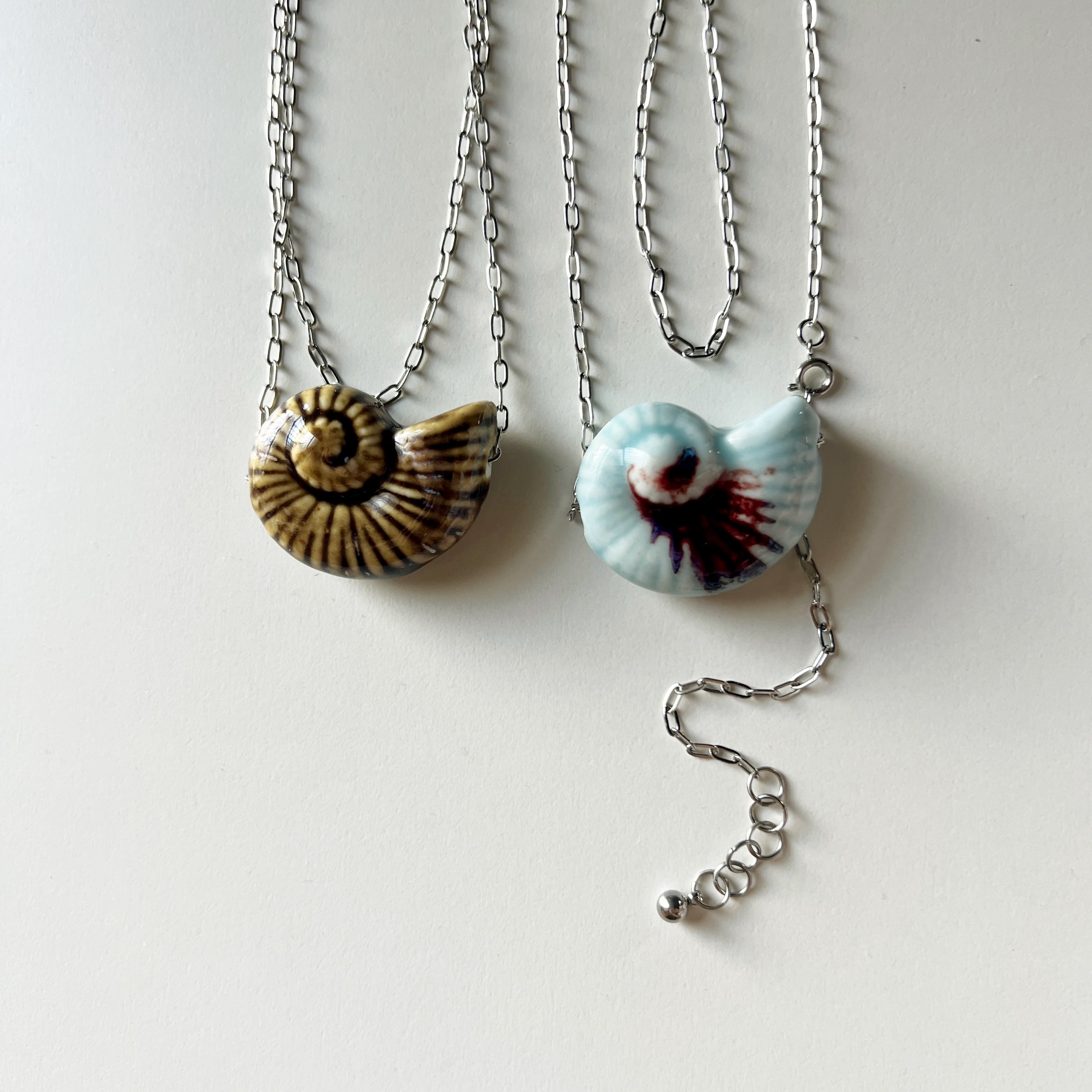 アンモナイトの様なカタツムリの様な、可愛いうずまきモチーフネックレス。