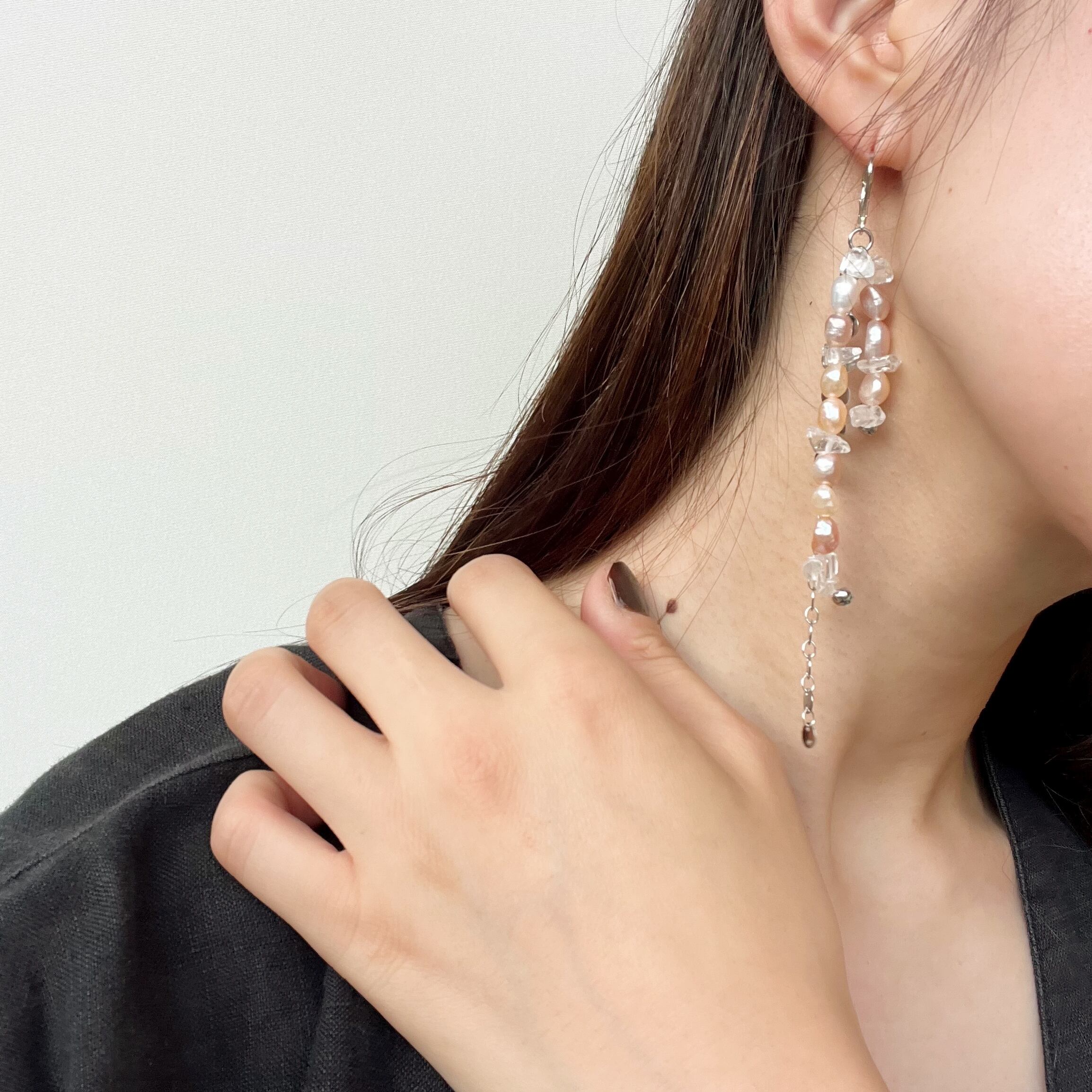 淡水パールと天然石をたっぷりと使用したロングピアス✳︎