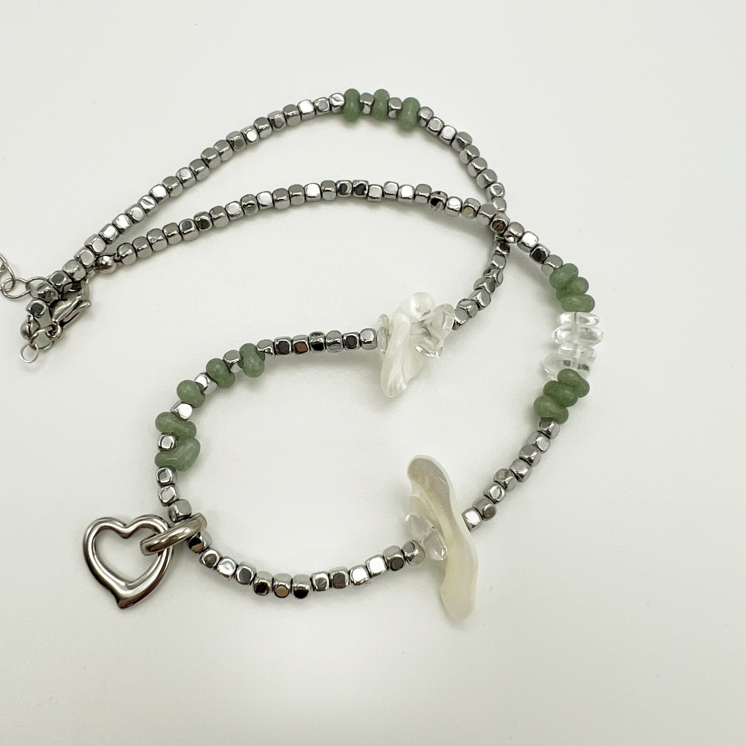 色々な素材のビーズをmixしたシルバービーズネックレス◎