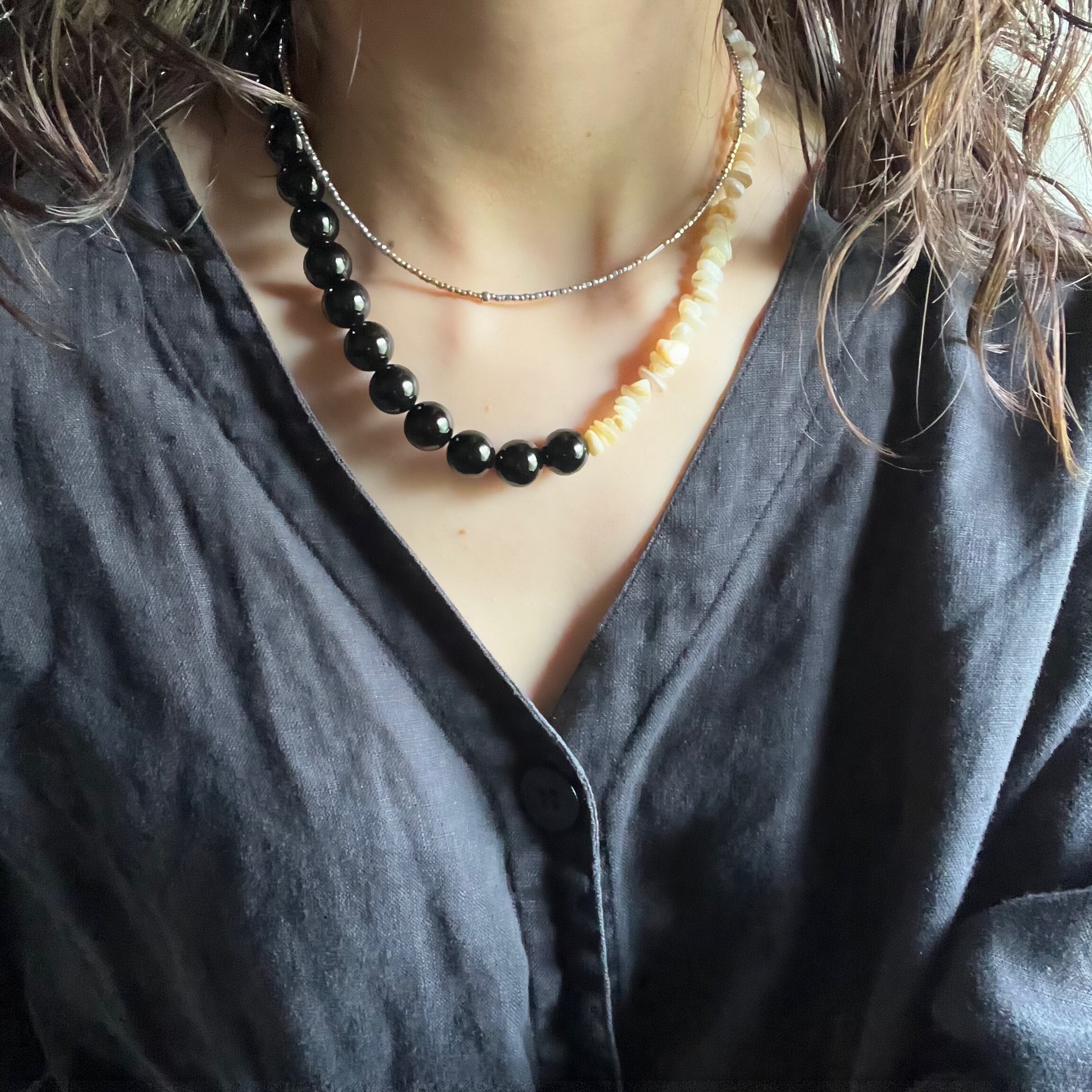 natural stone × shell necklace