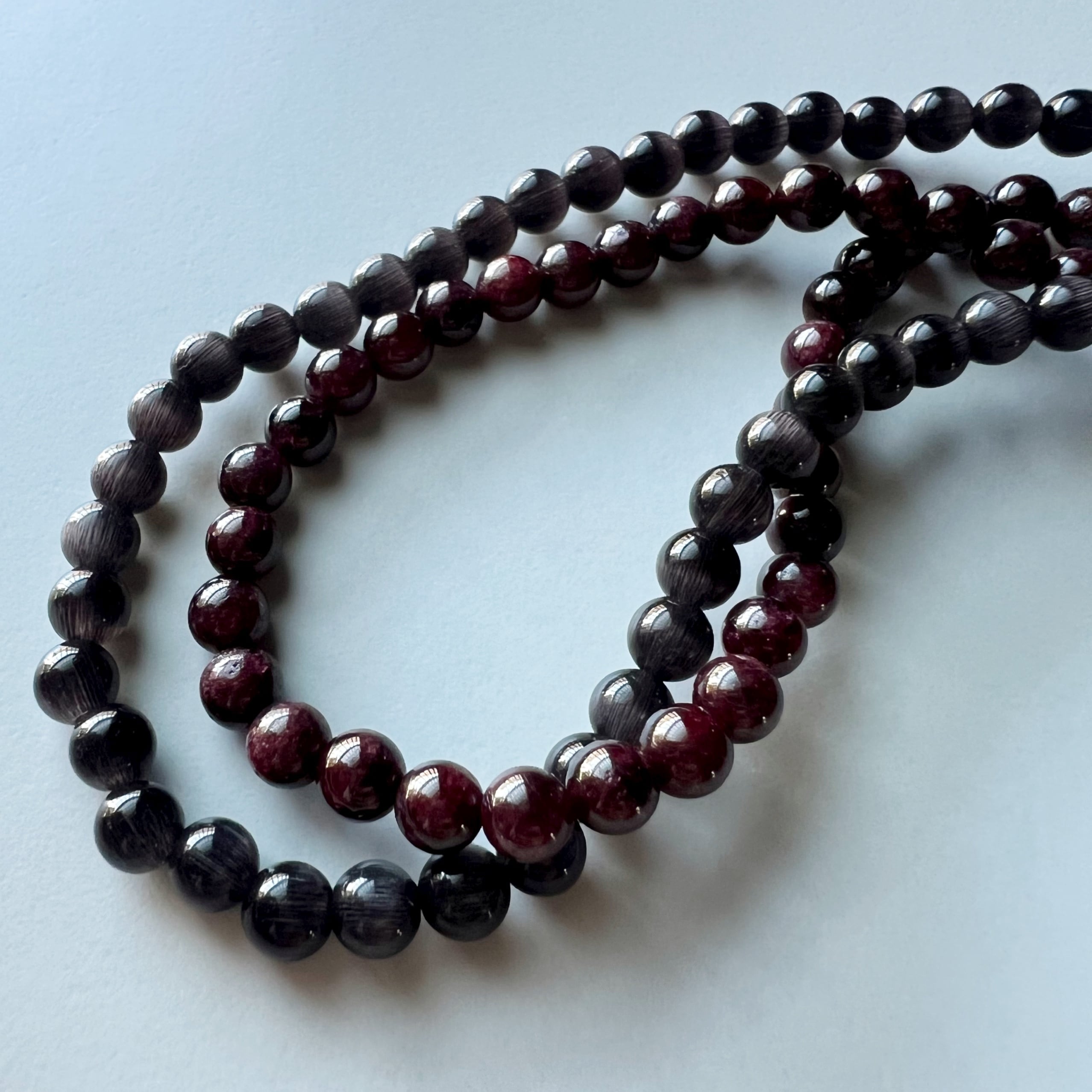 black × grayはガラスのキャッツアイビーズ、wine-redは天然石のガーネットを使用